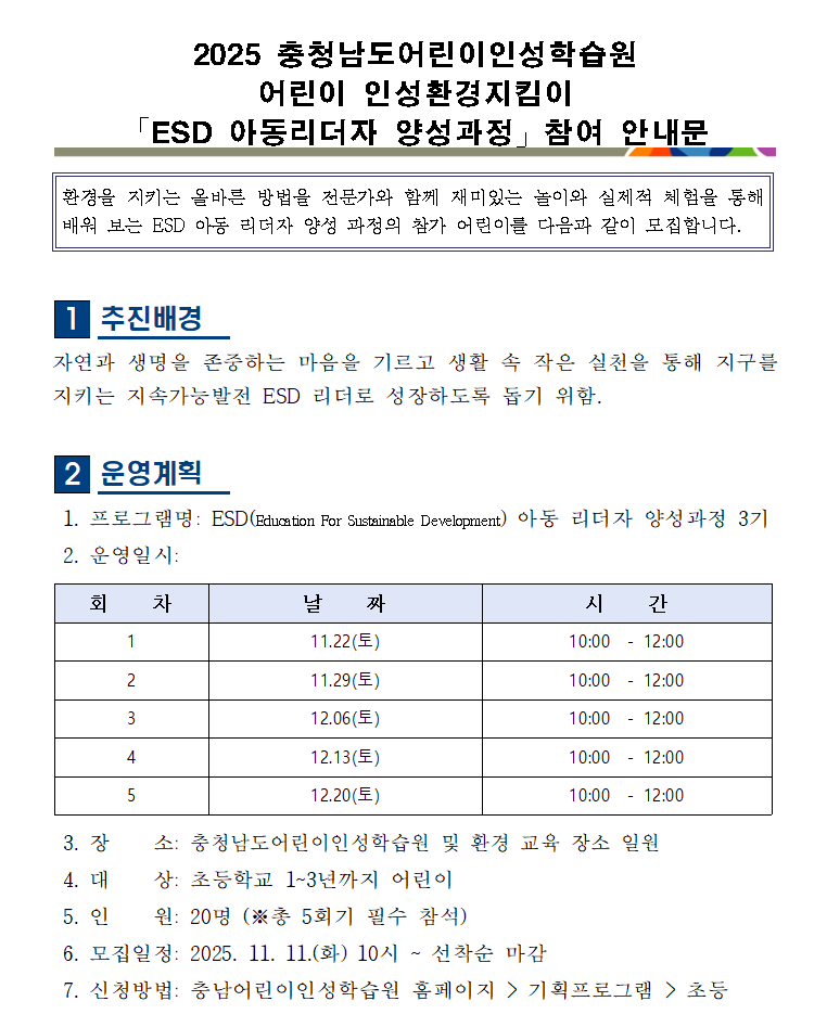 2025 아동 리더자 양성과정 3기 예약안내 |